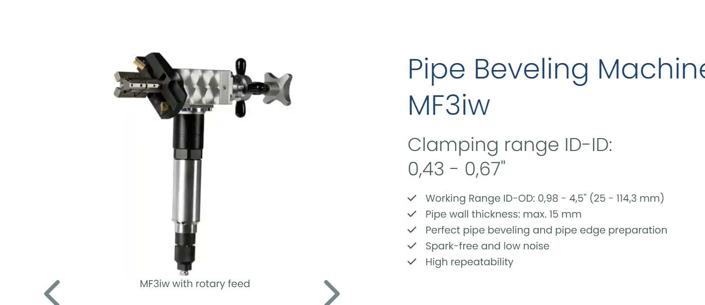 Η φορητή λοξότμητη μηχανή σωλήνων MF3iwL έχει σχεδιαστεί ειδικά για την προετοιμασία ραφής συγκόλλησης σε σωλήνες με παχύ τοίχωμα, σωλήνες λέβητα, ακροφύσια και κεφαλές. Με χαμηλό βάρος και εργονομική κατασκευή, μπορεί να χρησιμοποιηθεί εύκολα από ένα μόνο άτομο, γεγονός που την καθιστά ιδανική για φορητές εφαρμογές σε απαιτητικά βιομηχανικά περιβάλλοντα. Η MF3iwL προσφέρει ακρίβεια και αξιοπιστία σε κάθε εργασία, εξασφαλίζοντας ανώτερη ποιότητα ραφής στη διαδικασία συγκόλλησης. Επιπλέον, Η MF3iwL διατίθεται με δύο επιλογές κινητήρα, πνευματικό και ηλεκτρικό, προσφέροντας ευελιξία ανάλογα με τις ανάγκες της εργασίας. Και οι δύο εκδόσεις εξασφαλίζουν αξιόπιστη και σταθερή απόδοση με ειδικές λειτουργίες για αυξημένη ασφάλεια και ακρίβεια.
