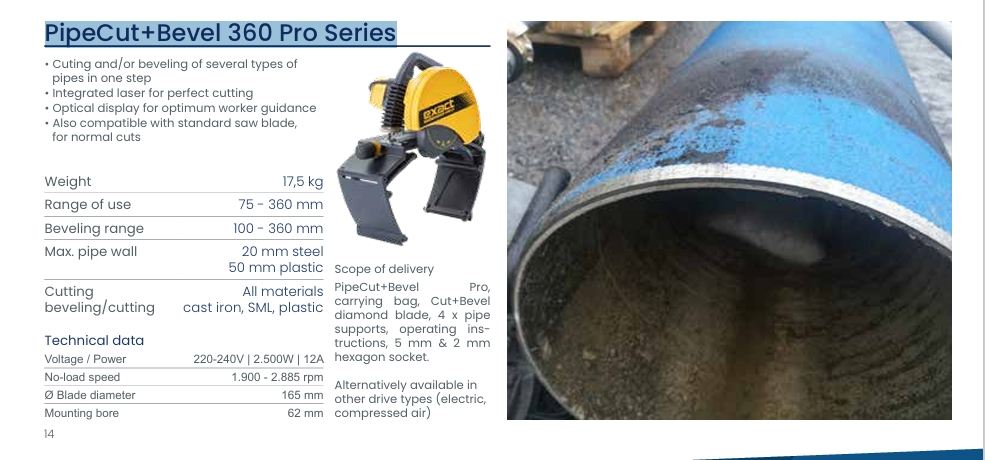Η Exact Pro Series 360 είναι το πιο προηγμένο πριόνι σωλήνων για κοπή και λοξοτομή σωλήνων νερού και αποχέτευσης σε μία μόνο διαδικασία.
